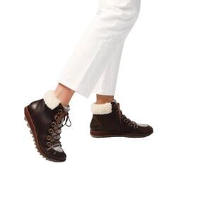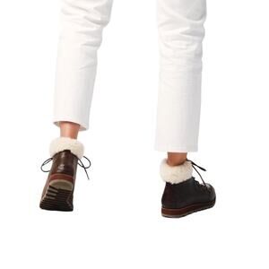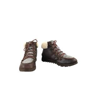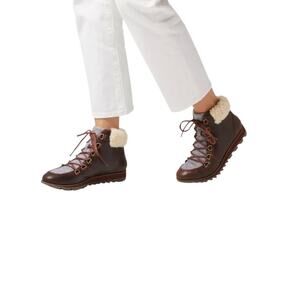 SOREL Harlow Lace Cozy Ankle Boot Women 8 Brown Leather Shearling Grunge Cottage