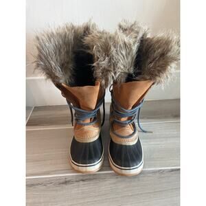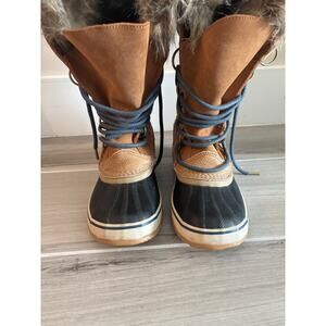 SOREL JOAN OF ARTIC WOMEN'S WATERPROOF BOOT CAMEL BROWN/NAVY US 9