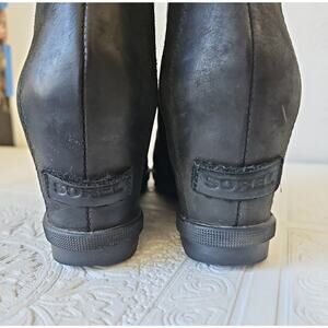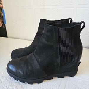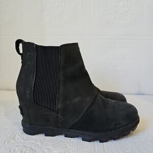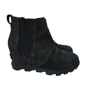 SOREL Joan Leather Rhapsody Wedge Snow Boot Womens 8.5 Black