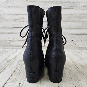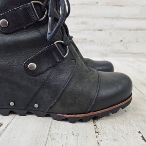 SOREL Joan Of Arctic Leather Wedge Mid Winter Ankle Boots in Black NL1987