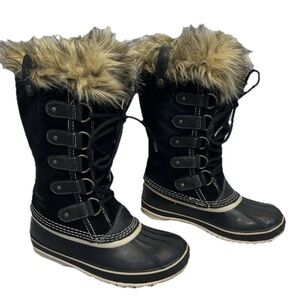SOREL Joan of Arctic Midcalf Boot US 6 Black Fur Waterproof Snow cold weather