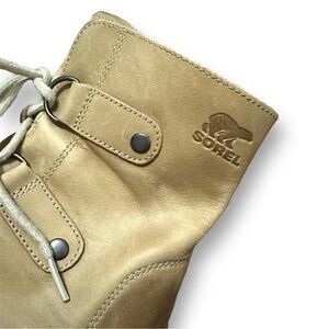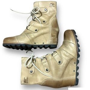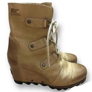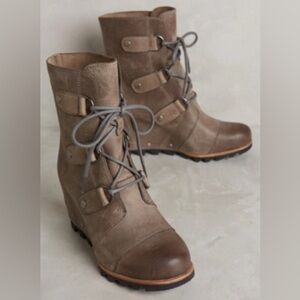 SOREL Joan of Arctic Wedge II Ankle Boots in Ash Brown Leather Sz. 8