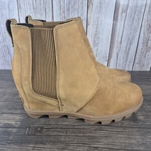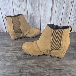 SOREL Joan of Arctic Wedge II Chelsea WP Boots Camel Brown Leather Women's Sz 10