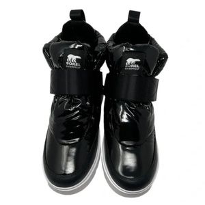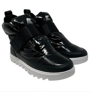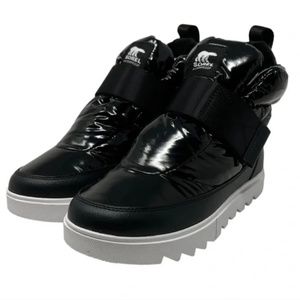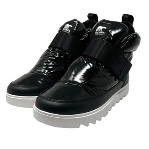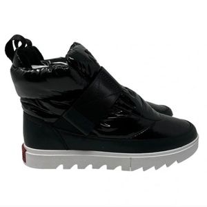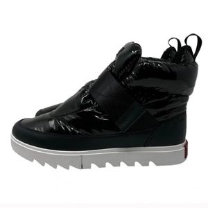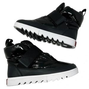 EDGY SNEAKER/BOOT Inspired by black ice, this cool winter boot with sneaker-like fit features edgy patent nylon and super-warm insulation. Stay cozy and dry with its 200g of insulation, soft microfleece lining, and seam-sealed waterproof construction. Walk anywhere and everywhere with its comfortable EVA footbed, strap for adjustability, and rubber sole for grip.