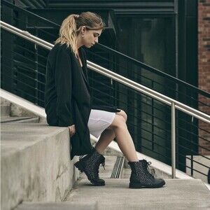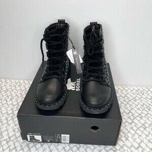 SOREL Lennox Genuine Shearling Waterproof Lace-Up Boot, Black/White, size 7.5