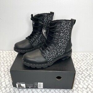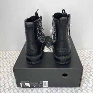 Sorel Lennox Lace Cozy leather and tweed fur lined waterproof boots, Size 7.5.