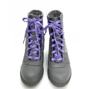 SOREL Lexie Leather Wedge Lace up Boots Metallic Silver Gray Style 182247105