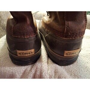 Get ready for the winter season with these heavy-duty SOREL Maverick snow boots. Gently preowned with plenty of life left these waterproof boots are cold weather rated to -25° and have a lace-up closure for a secure fit and are made with a leather upper material and felt lining material to keep your feet warm and dry. The rubber outsole material ensures reliable traction on snow and ice, making these boots perfect for cold weather conditions. With a standard shoe width and men's size 11, these boots are great for any winter adventure. Don't let the weather stop you from going out and enjoying the season in style with these SOREL Maverick snow boots.