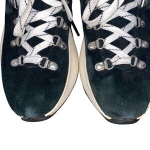 These Sorel boots are designed for harsh winter conditions, featuring a cozy shearling lining and durable rubber sole. The suede exterior provides a stylish touch while keeping feet warm and dry. Ideal for trekking through snow or icy paths, their lace-up design ensures a snug fit.