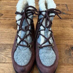 SOREL Sneakchic Alpine Nubuck Suede Faux Shearling Lace up Ankle Boots 8.5M