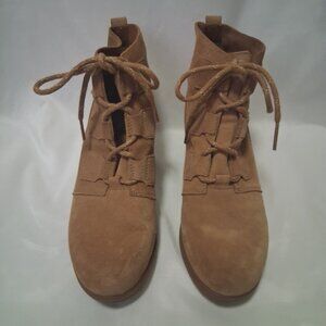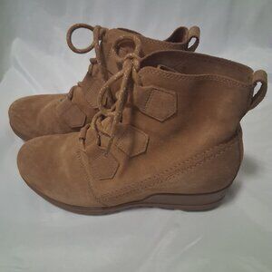 SOREL Suede Wedge Lace Up Ankle Bootie Women Brown/Chestnut/ Tan-10