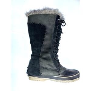 SOREL Sz 7 Joan of Arctic Leather Suede Faux Fur Waterproof Winter Boots
