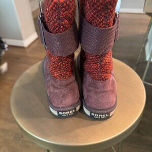SOREL The Campus Boots suede-knit Madder Red brown Winter size 8.5