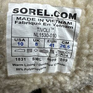 The boots are made with a cotton and rubber fabric type and lined with fur for added warmth and comfort. The houndstooth pattern and accents add a touch of sophistication to the overall design. These boots are waterproof, making them perfect for outdoor activities like hiking and snowstorms. Get your hands on these Sorel Tivoli boots and step out in style this winter!