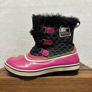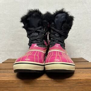 SOREL Torino Pink Patent Leather Waterproof Lace Up Snow Boots Size 10 Shearling