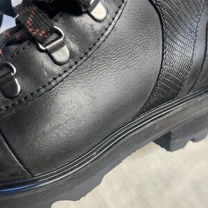 Sorel Lennox Waterproof Hiking Boot; Black Leather Women’s 7.5 This shoe is preowned. There are some signs of wear on the inner and outer sides of the shoe, as well as on the toes.. Please view and enlarge the enclosed pictures for details. The soles show very little signs of wear and offer superior traction.