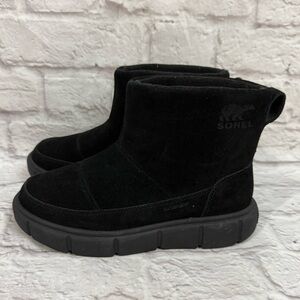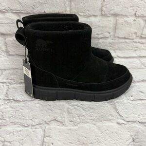 SOREL WOMEN'S EXPLORER SLIP ON WATERPROOF BOOTS- BLACK SUEDE 6.5
