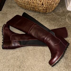Stunning SOREL WOMEN'S FIONA OTK LUX / Collection Over the Knee, built-in wedge Boot in a Rich Wine Leather Size 7