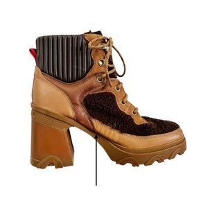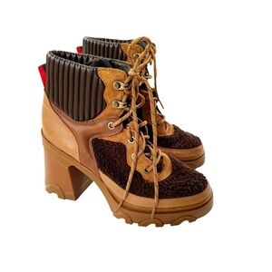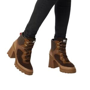 SOREL Brex Heel Cozy Lace Up Boots Tawny Buff Blackened Brown