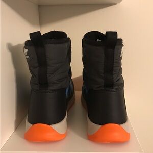SOREL Whitney II Plus kids snow boots in excellent used condition. Only worn twice. Crafted with a waterproof upper to keep feet dry, a fabric lining for a cozy feel, and a durable sole that adds traction.