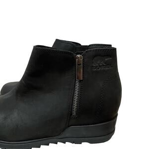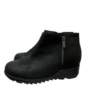 SOREL Womens Evie II Zip Waterproof Wedge Ankle Boots Szie 9.5 Black Side Zip