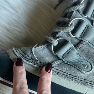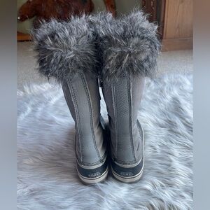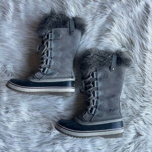 In preloved condition SOREL Women's Joan of Arctic Insulated Waterproof Winter Boots. Women’s size 10, plenty of life left in these boots. Warm and waterproof. Please see photos for slight marks and the button is missing on the boot (all pictured). Nice grey color to match with everything. Please let me know if you have any additional questions!