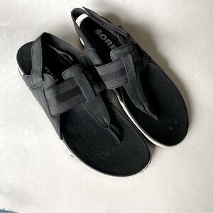 SOREL Women's Out ‘N About Plus leather black flats sandals sling back 8