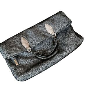SORIAL Black and White Pebbled/ Dot Shimmer Chain Link Hand Bag