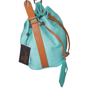 SORIAL New York Python Leather Drawstring Mint Bucket Bag with Pouch NWT