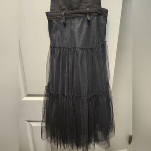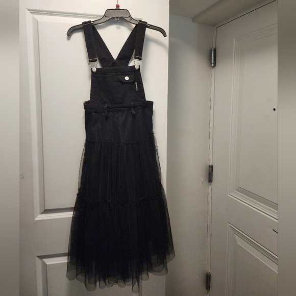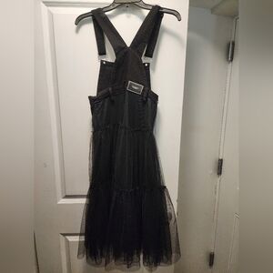 black denimjumper tulle dress, can fit a small, no size tags, brand new with tags, straps are adjustable, side zipper, black lining