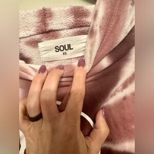 Give your cozy wear some edge with this insanely soft SOUL hoodie in a burgundy + white spiral tie-dye, featuring a bold skull-and-crossbones front graphic. It’s cropped, fleecy, and a little dangerous—basically the hoodie equivalent of “sweet but will absolutely hex you.”