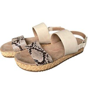 SOUL Naturalizer Dorri Wedge Snake Print Raffia Platform Sandals Cream Size 9.5