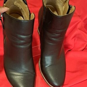 SOUL Naturalizer Haley Nubuck Ankle Boots , Black, Almond toe Wedge, women's size 8M, pre-owned good condition some heel scratches (picture), see photos for condition, no box