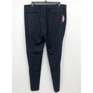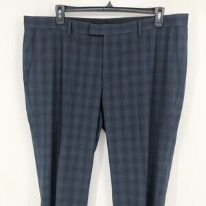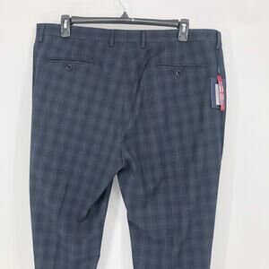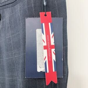 SOUL OF LONDON Mens Dress Pants 42R Navy Blue Glen Plaid Flat Front NWT