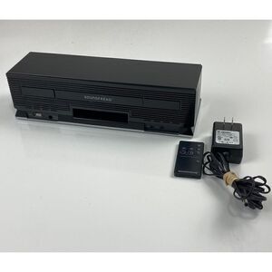 Preowned and in excellent working condition. Tested Bluetooth connection and audio working great. Docking station untested but all appears in good condition. Comes with remote (located in its own compartment on the bottom) and power cord.