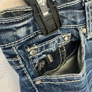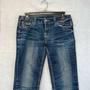 SOUNDGIRL Jeans Women's Size 9 Blue Denim Sequin Embroidered Bootcut Medium Wash