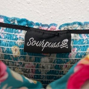 SOURPUSS Aqua Blue Rosey Luau Retro Pinup Dress Size Medium