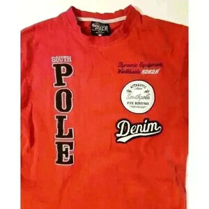 SOUTH POLE Mens RED 100% Cotton Polo T-Shirt Top size Med