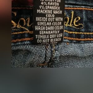 Stylish dark blue jean shorts. Features rolled cuffs. Classic South Pole design.