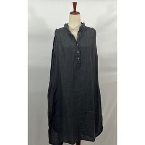 SOUTH STREET LINEN SOST Sz 3 XL 18/20 Charcoal Gray Sleeveless Jane Linen Tunic Dress