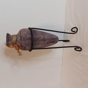 South Western Ceramic Pottery Urn Style With Rope and Wooden Beads With Stand