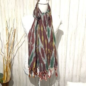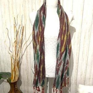 South Western Print Long Scarf Fringe/ tassels hem on both sides, beautiful fall colors, approximately measurements 64”x18”, see all pictures for details.