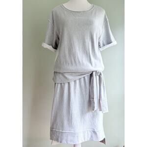 SOUTHCOTT Large Short Sleeve Sweatshirt Dress Mixed Media Gray Casual Loungewear