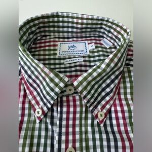 Beautiful plaid print great for the holidays or anytime you want that casual coastal look. See pictures for measurements. Like New Condition!