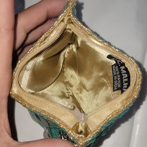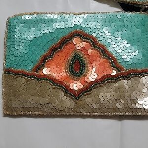 6x4 inches,  7 inch strap, turquoise, orange, taupe