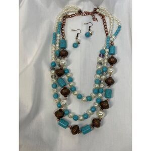 SOUTHWEST TURQUOISE PEARL FANCY Western Rodeo Cowgirl Fashion Necklace Set New