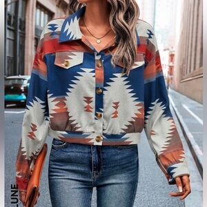 SOUTHWESTERN PRINT LIGHTWEIGHT TRUCKER STYLE BUTTON DOWN JACKET SIZE MEDIUM