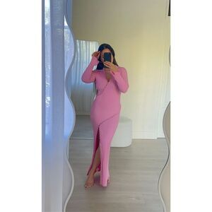 SOVERE Facet Knit Maxi Dress in Musk -Side front hem split size S NWT218