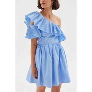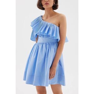 SOVERE Bliss Asymmetrical shoulder frill Mini Dress Blue size S NWT189