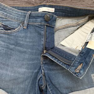 Features a classic blue wash, low-rise design, and machine-washable care for easy maintenance. New condition with tags, perfect for everyday outings or a relaxed summer look.